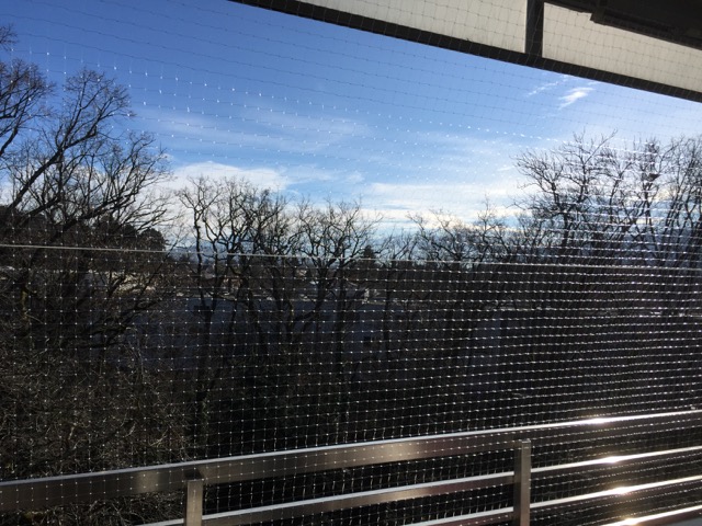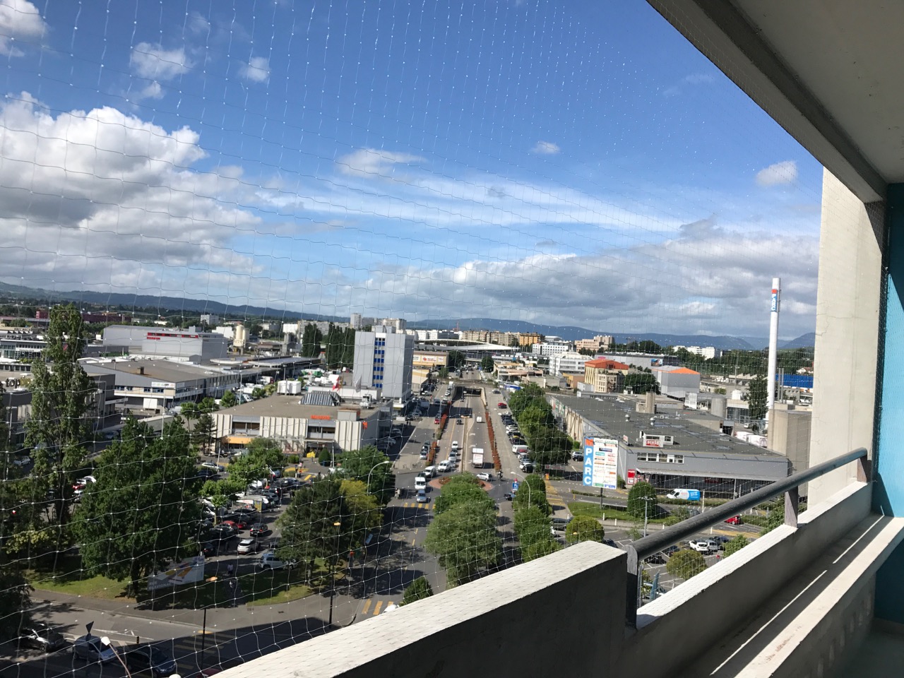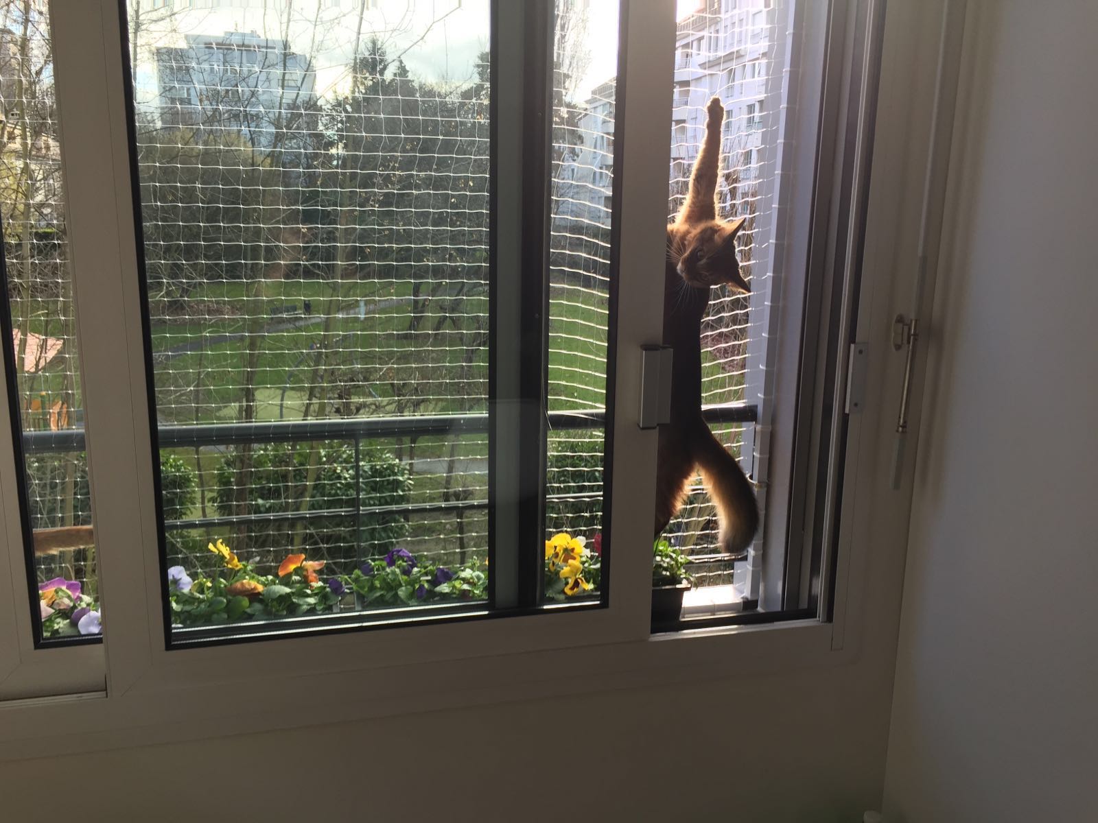 Filet transparent pour dissuader les chats d’aller rendre visite aux voisins. Plan-les-Ouates.